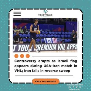 وجود پرچم رژیم صهیونیستی در مسابقه والیبال ایران و آمریکا در جام ملت ها موجحب شکایت ایران شد.پس از برگزاری بازی تیم ملی والیبال ایران مقابل آمریکا در هفته نخست لیگ ملتها، حاشیهای جنجالی درخصوص نمایش پرچم رژیم صهیونیستی در سالن مسابقه به وجود آمد. این موضوع واکنش مسئولان فدراسیون والیبال ایران را به دنبال داشت و آنها تصمیم به پیگیری رسمی این اتفاق در سطح بینالمللی گرفتند.